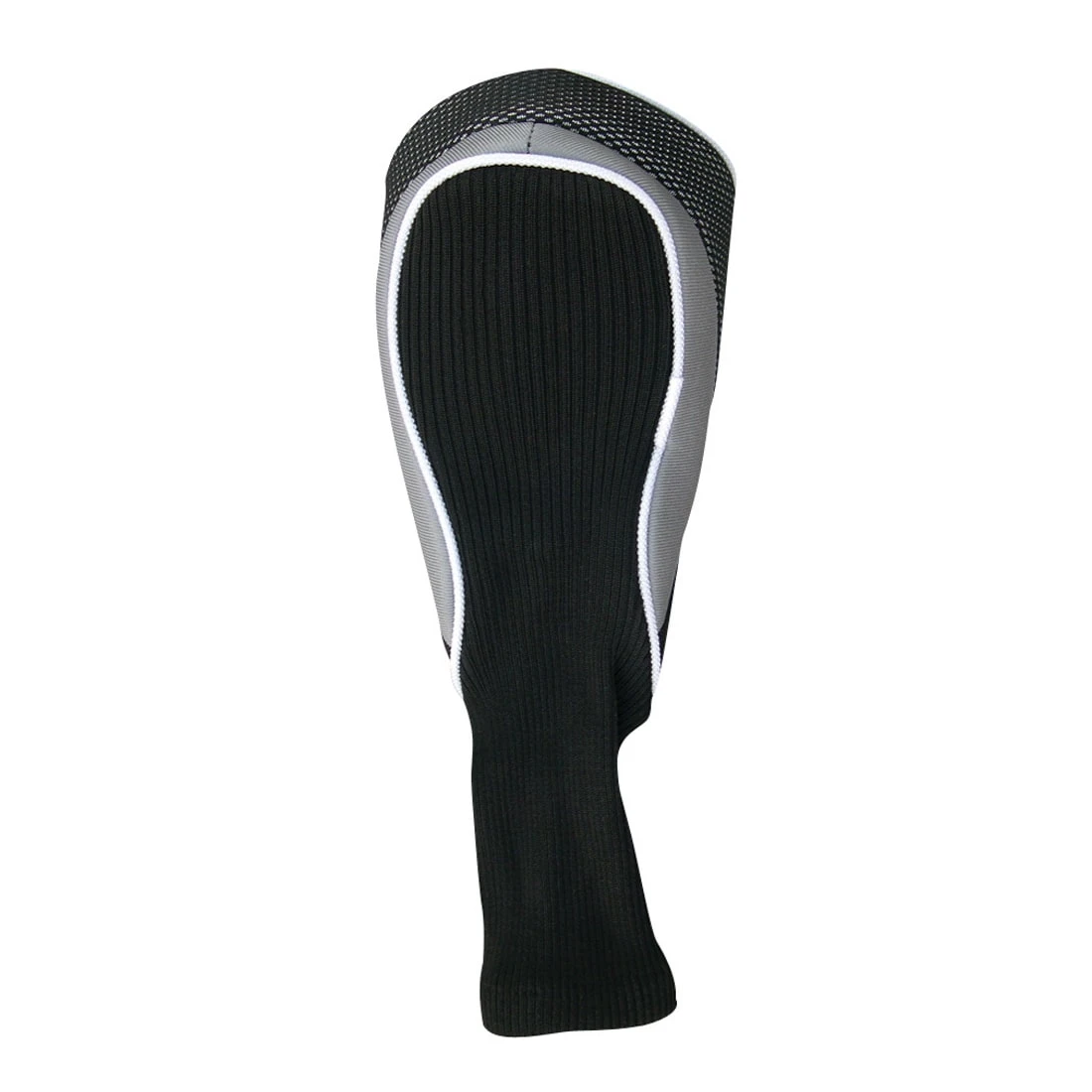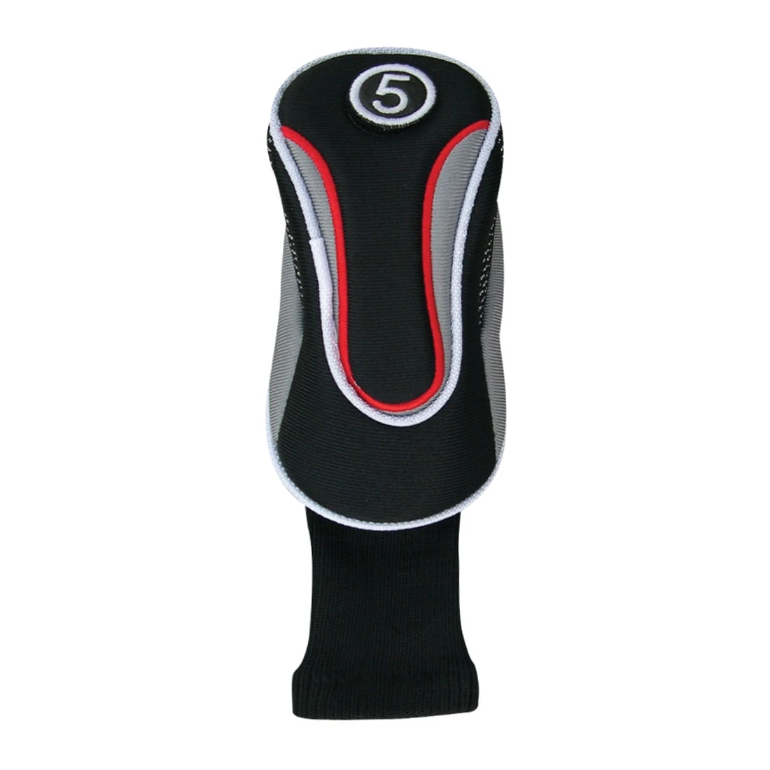 - Barrel type head cover with graphite friendly sock, slip-over design. Black-gray color combination with red and white trim lines.