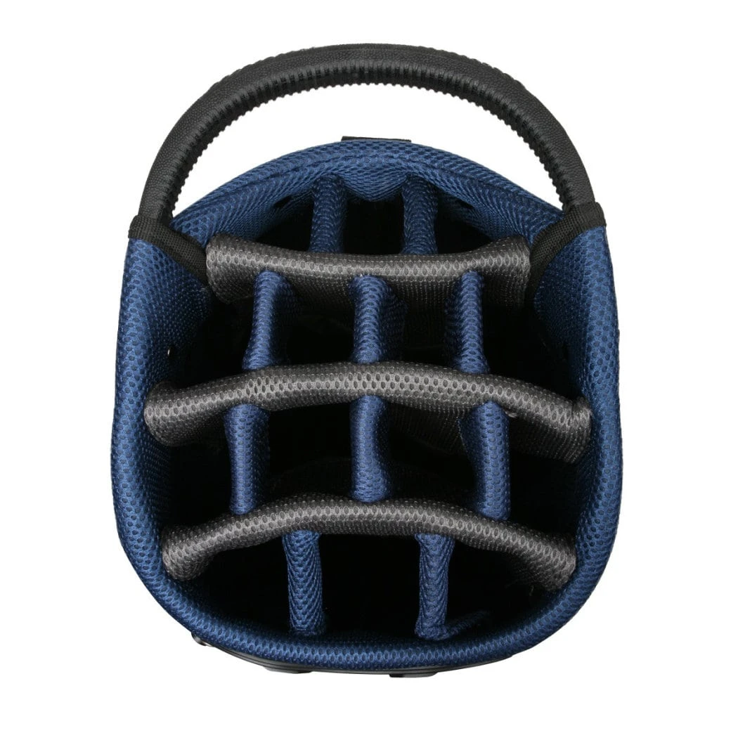 - Towel ring with Velcro glove attachment, umbrella holder, scorecard sleeve, pen sleeve, hydration compartment, rain hood cover